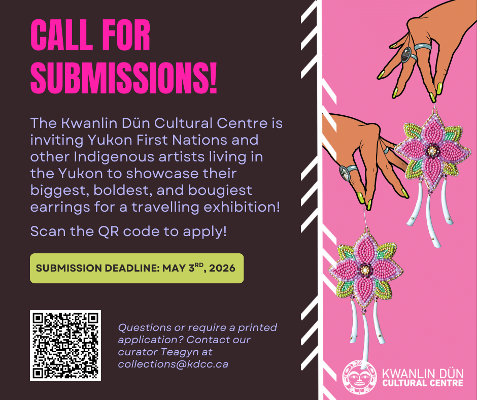 Kwanlin Dün Cultural Centre (KDCC) is pleased to announce the return of the My Big Bougie Beaded Earrings* exhibition for Summer 2026. Building on the success of last year’s show, this upcoming exhibition will expand into a travelling showcase, highlighting exceptional pieces from across the Yukon.